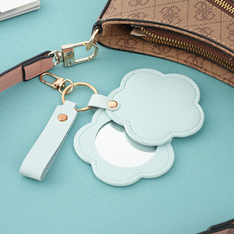 Miroir de poche double face rotatif en acier inoxydable avec loupe, petit miroir de maquillage portable, porte-clés, logo personnalisé, compact
