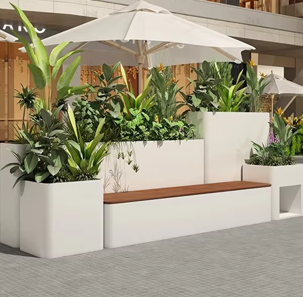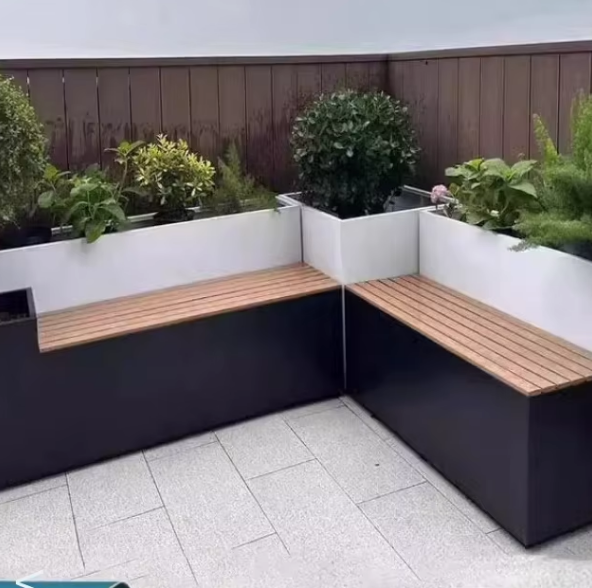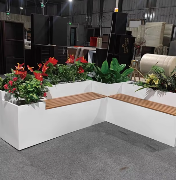 Bac à fleurs en acier inoxydable avec sièges, design moderne, adapté à l'installation en DIY avec des rampes d'escalier/de balcon
