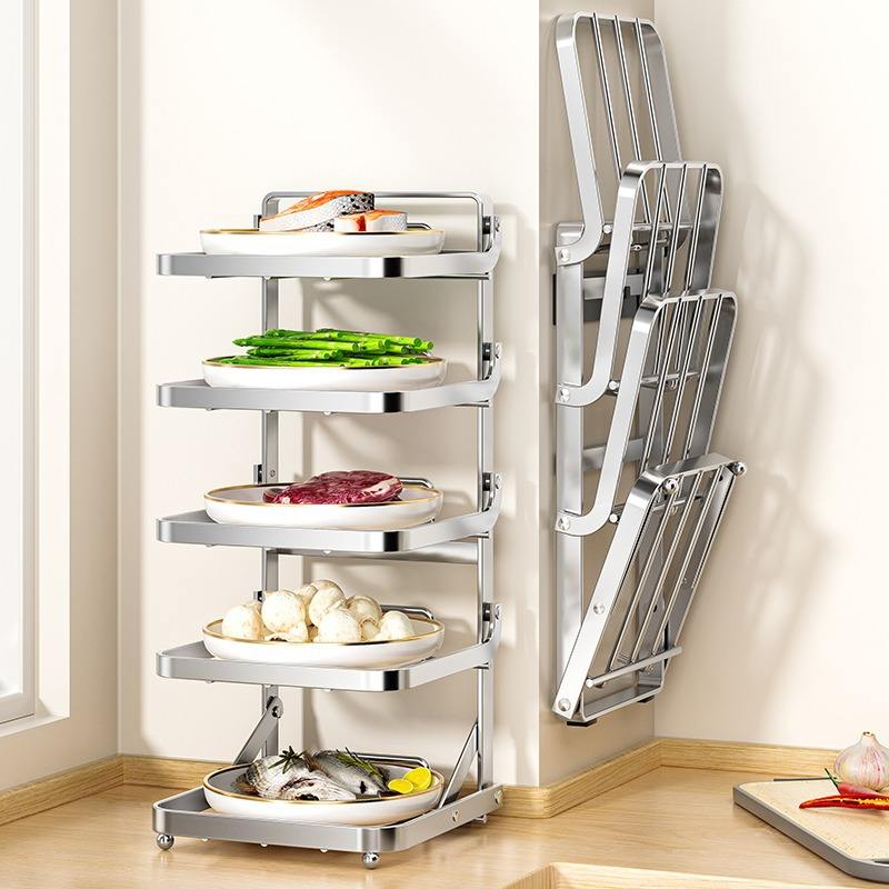 Étagère de cuisine pliable en acier inoxydable, murale, multi-niveaux, pour la préparation des aliments, plateau de rangement pliable pour légumes et plats