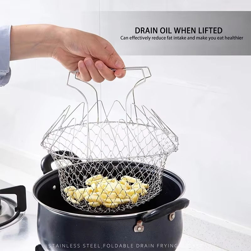 Outil de cuisine pliable en acier inoxydable panier de cuisson friteuse pour frites passoire de rinçage à la vapeur passoire en métal outil