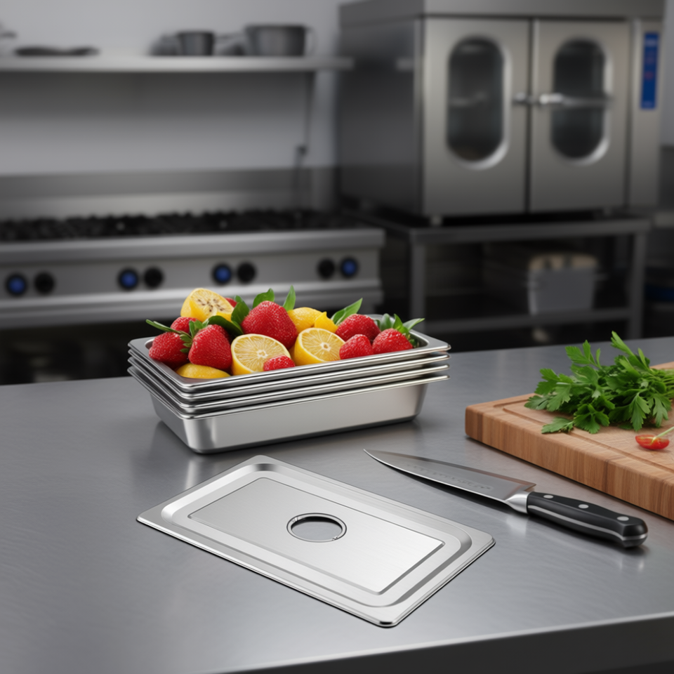 Stainless Steel Food Storage Container 20x12x4 Inches Deep Full Size Anti Jam Stackable With Lid For Kitchen Use