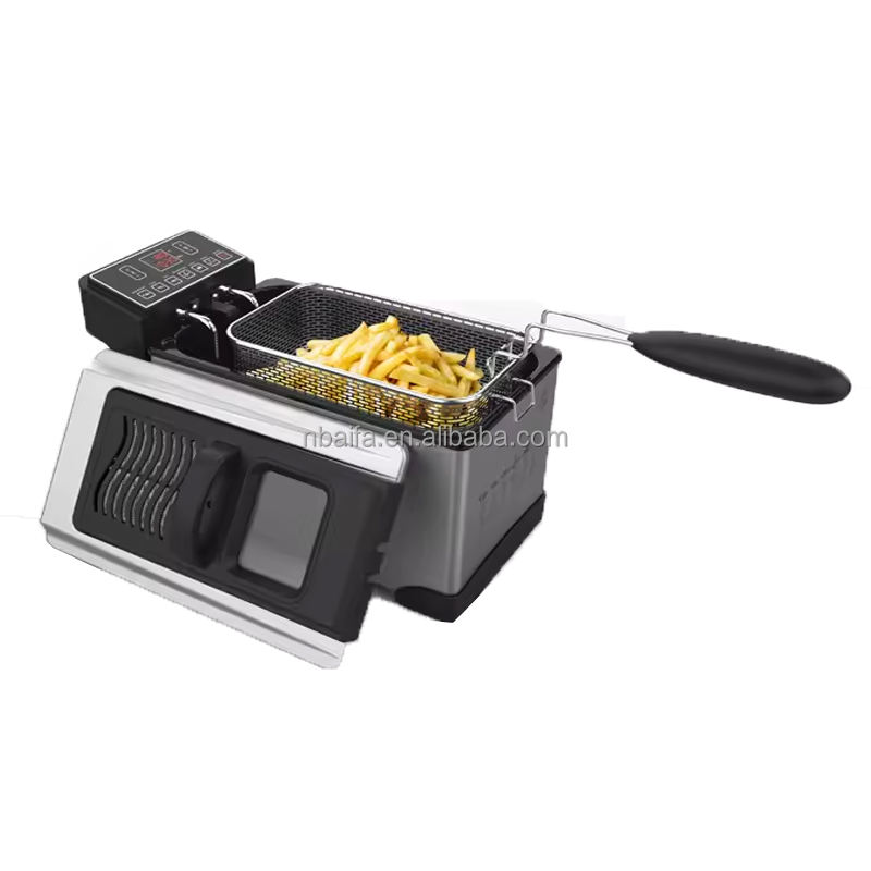Contrôle de thermostat réglable, Conteneur amovible huile, Affichage LCD, Surface de suisson anti-adhésive, Protection contre la surchauffe, Avec Voyant, Avec la fenêtre d'observationFonction