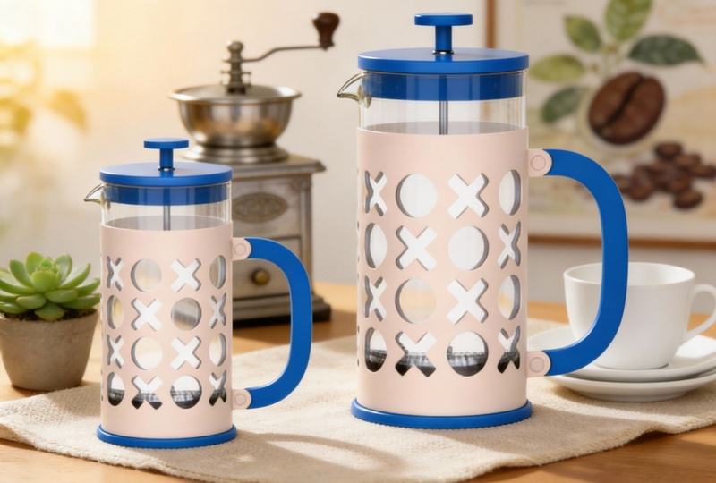 Cafetière à piston en acier inoxydable avec verre durable et design OEM haut de gamme personnalisable