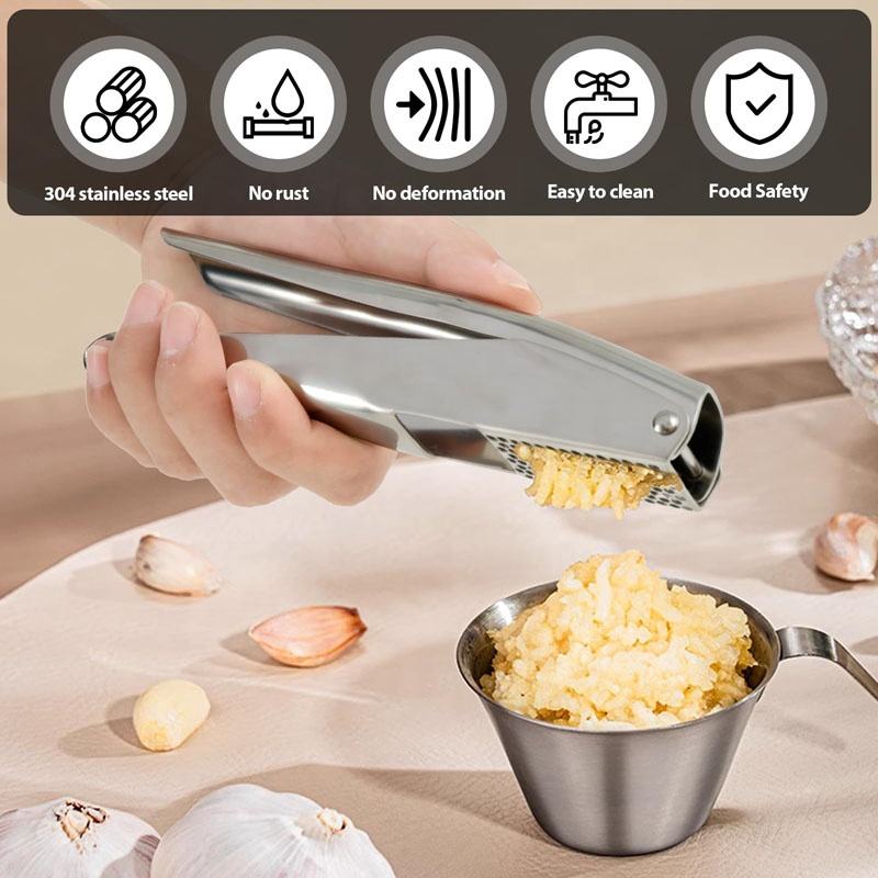 Presse-ail en acier inoxydable Coupeur et broyeur de cuisine manuel avec outil en plastique souple durable pour l'utilisation de légumes