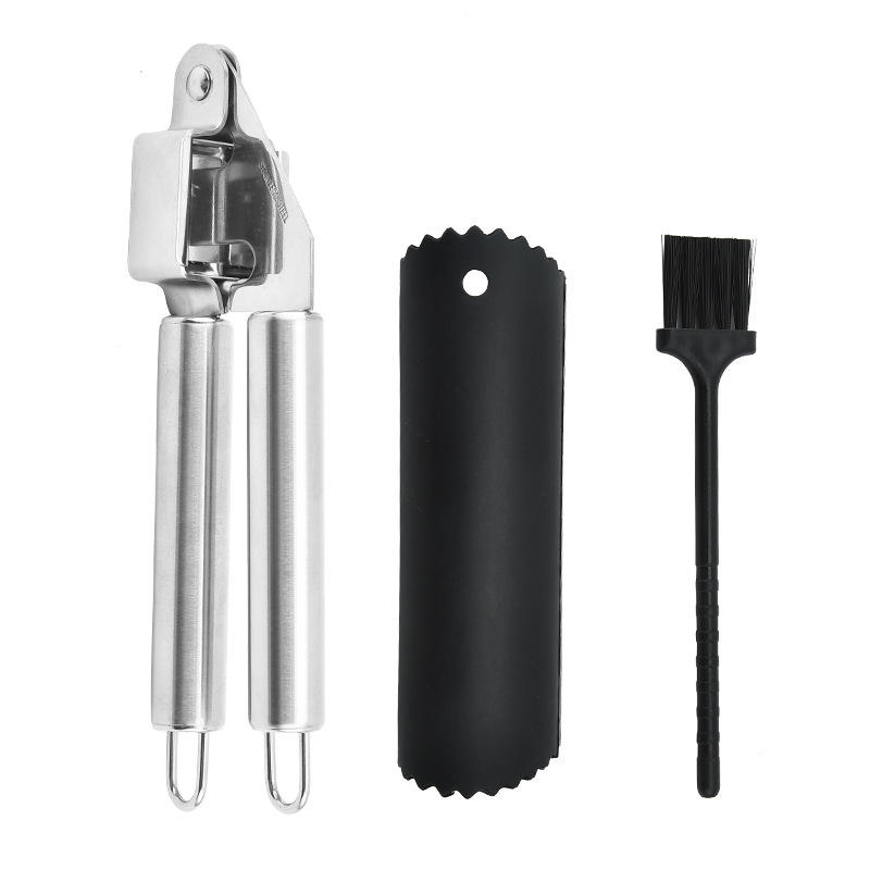 Ensemble de presse-ail en acier inoxydable, hachoir manuel avec brosse et couvercle de protection pour usage en cuisine