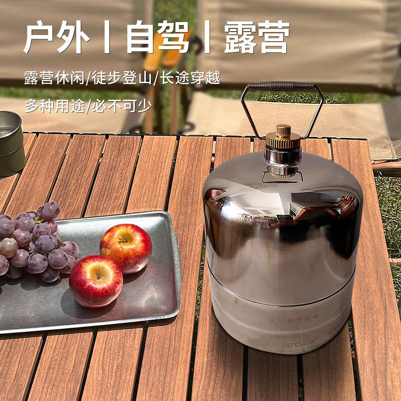 Bouteille de gaz en acier inoxydable rechargeable pour la cuisson en plein air, le camping, le barbecue, conception coupe-vent, utilisation en haute altitude