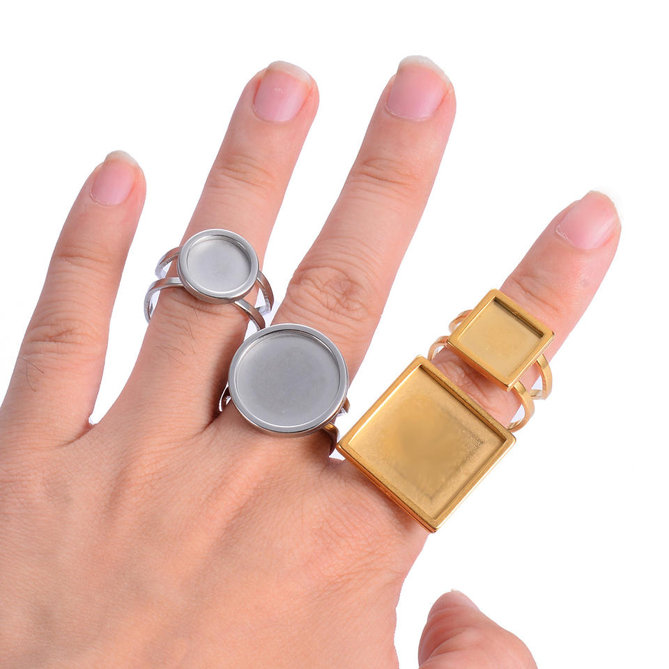 Acier inoxydable couleur or rond ouvert anneau réglage Cabochon blanc plateau Base bijoux à bricoler soi-même fabrication bordure accessoires en gros
