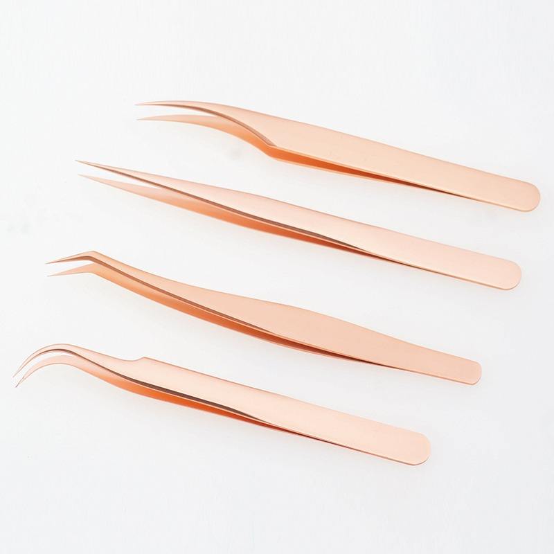 Pince à épiler professionnelle en acier inoxydable doré durable pour extensions de cils, droite, courbée, à pointe dentelée, personnalisable avec logo privé