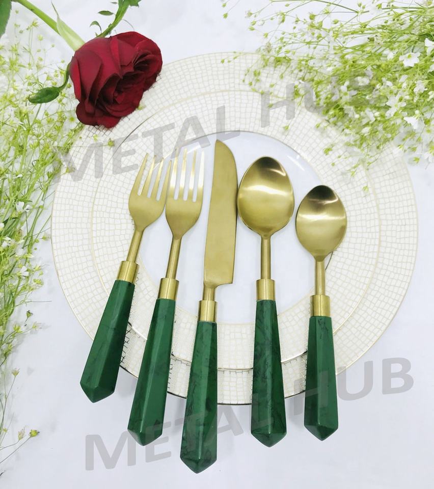 Nom du produit:Ensemble de couverts en acier inoxydable doré avec poignée verte