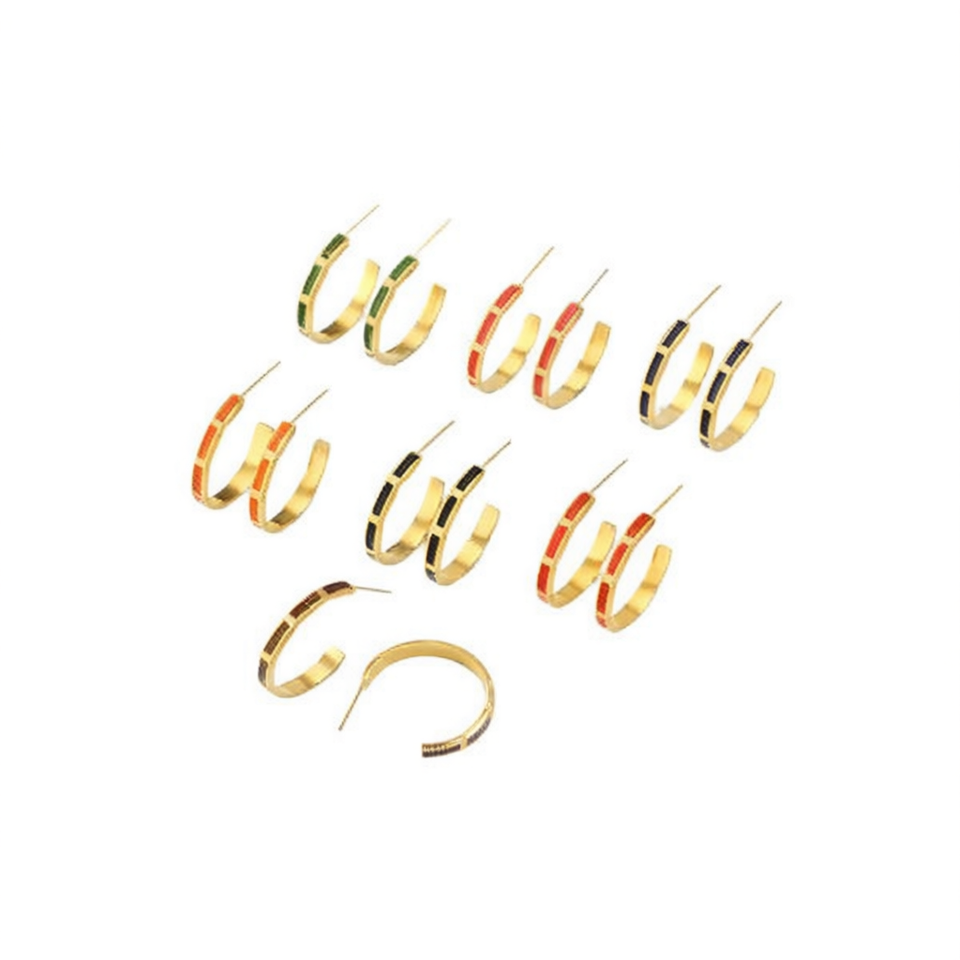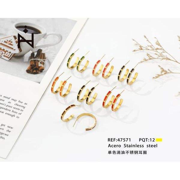 Boucles d'oreilles monochromes en acier inoxydable avec goutte d'huile.