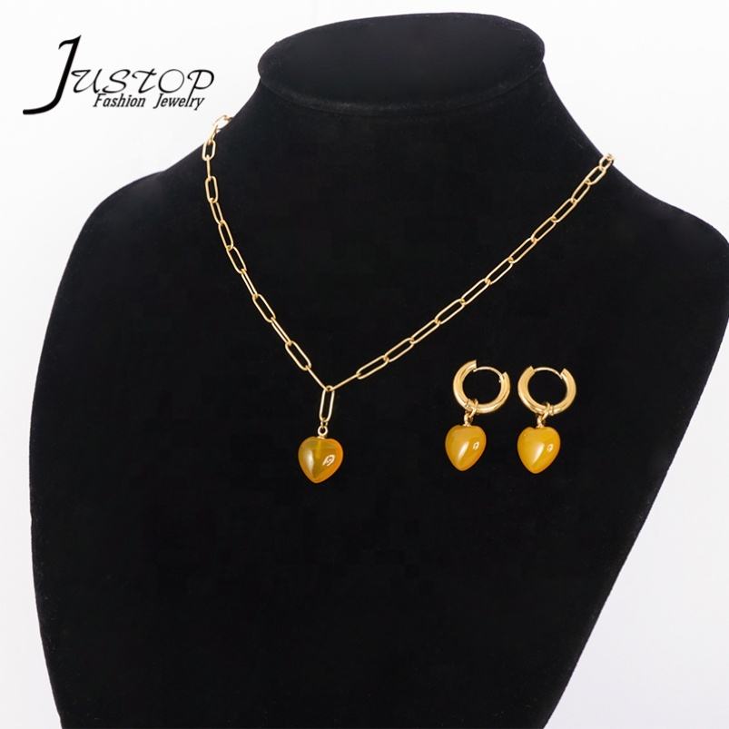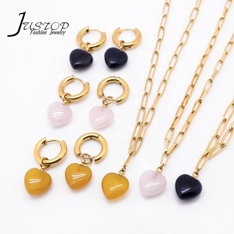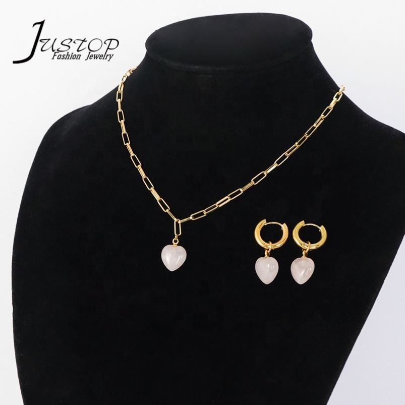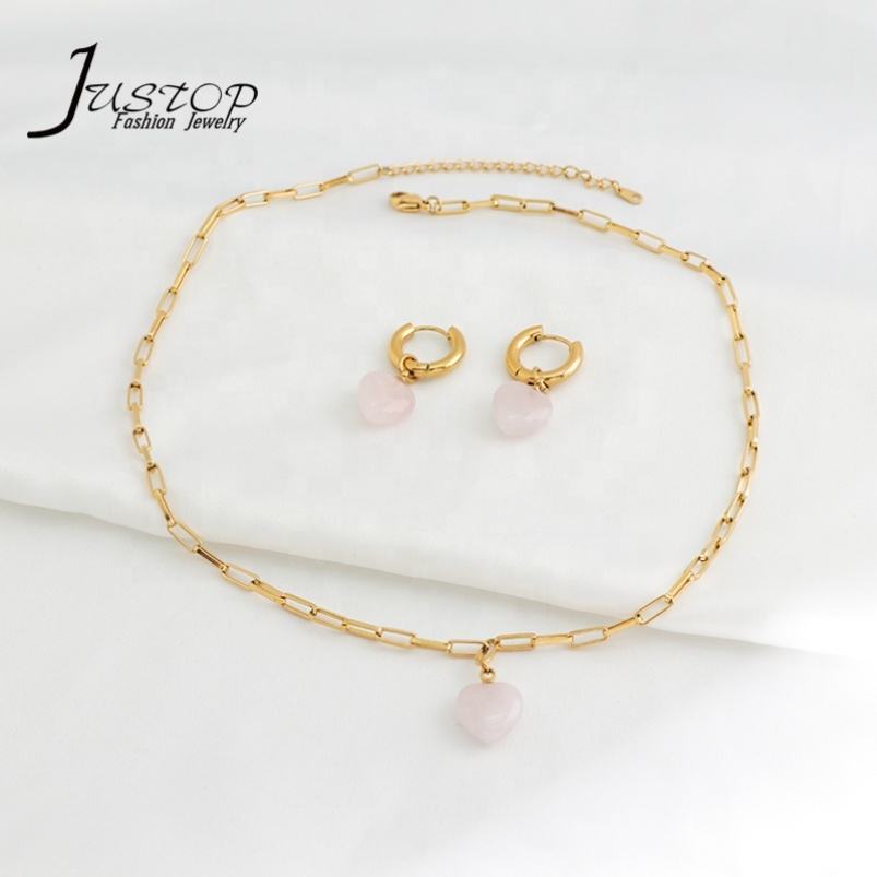 Ensemble Collier Ras-de-Cou et Boucles d'Oreilles Chaîne Fine en Acier Inoxydable Plaqué Or avec Pendentif Cœur et Breloques Designer pour Mariages et Anniversaires