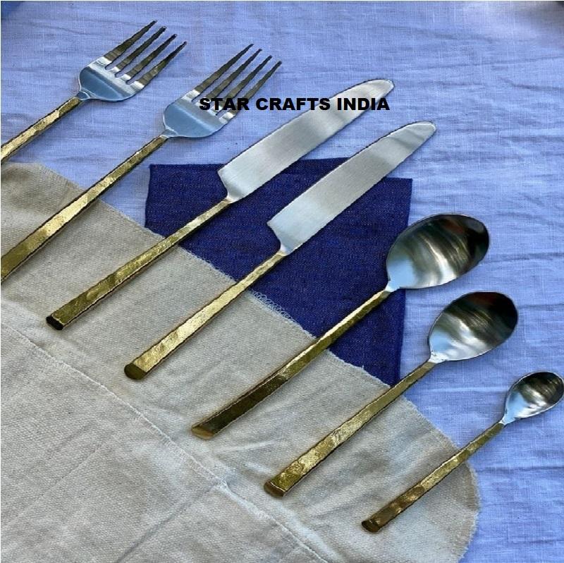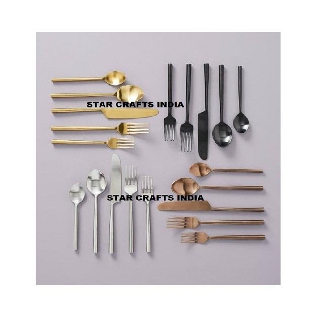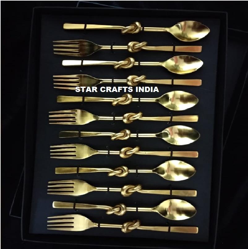 Ensemble de couverts en acier inoxydable plaqué or avec poignée de conception de noeud moyen Look moderne Ensemble de couverts de haute qualité