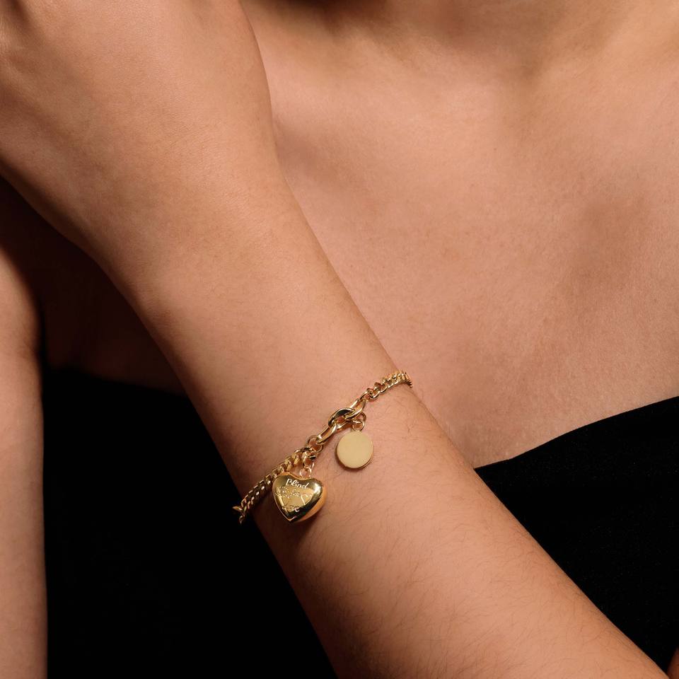 Bracelet en chaîne à maillons plaqué or en acier inoxydable avec pendentif en forme de cœur - Design gravé tendance, bijoux de luxe légers et polyvalents pour les fêtes