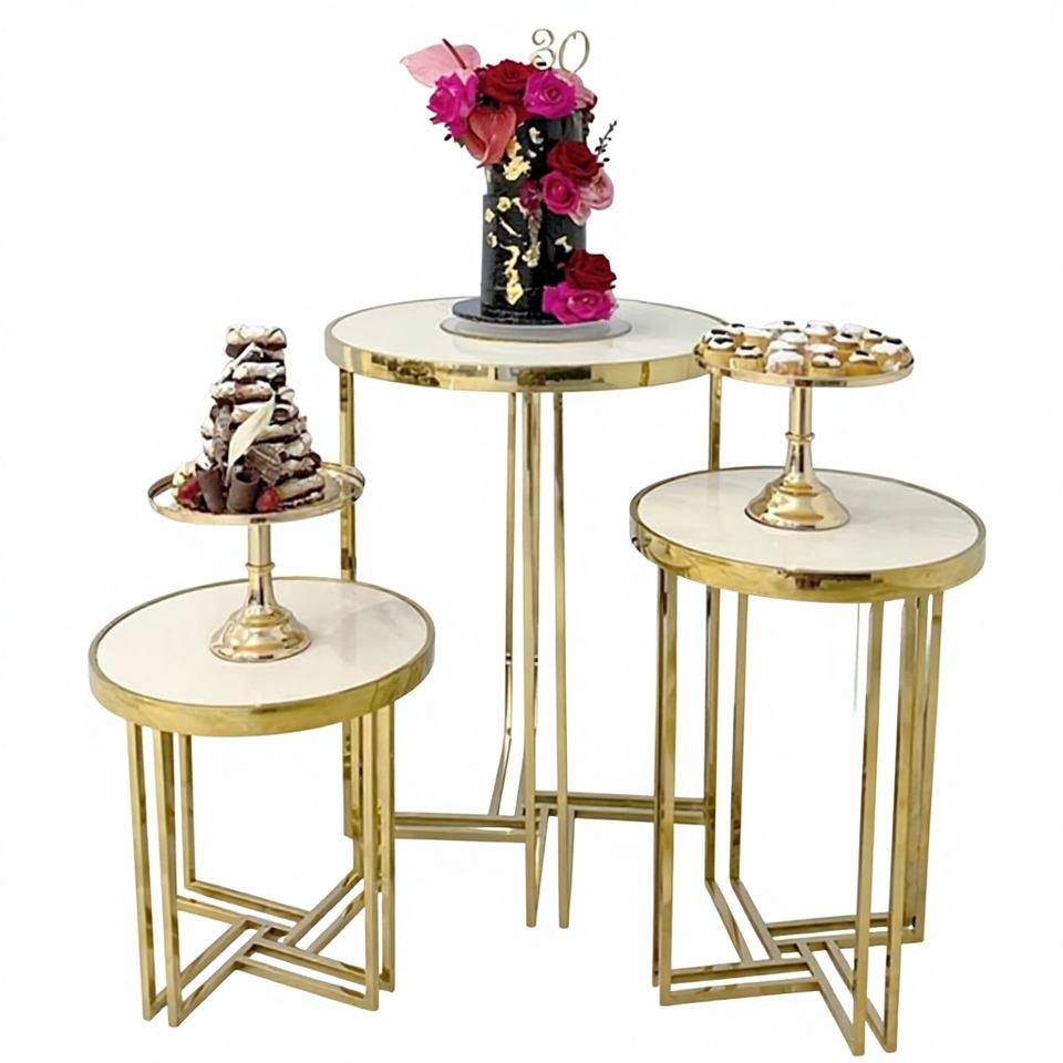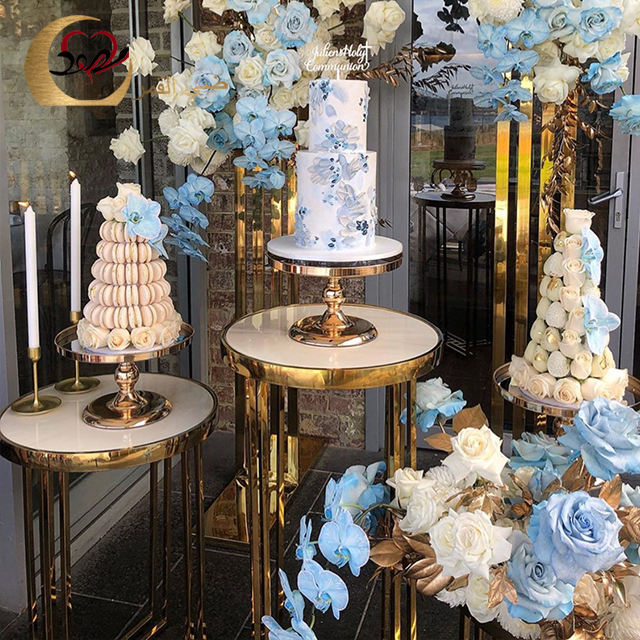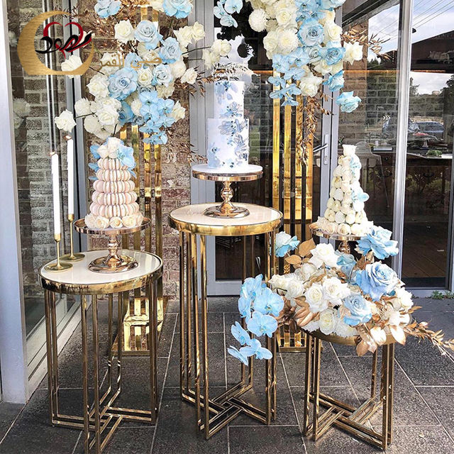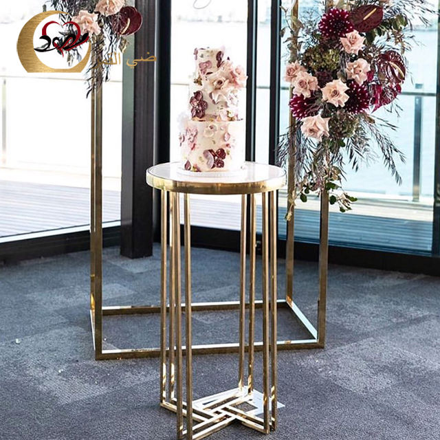 Socles en acier inoxydable dorés, romantiques et élégants, pour gâteaux et fleurs, pour la décoration de mariage/banquet