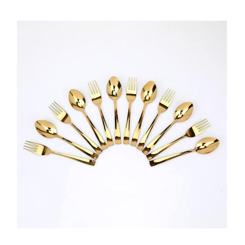Ensemble de cuillères en acier inoxydable doré de qualité supérieure, couverts plaqués or de luxe pour dîner, dessert et cadeaux