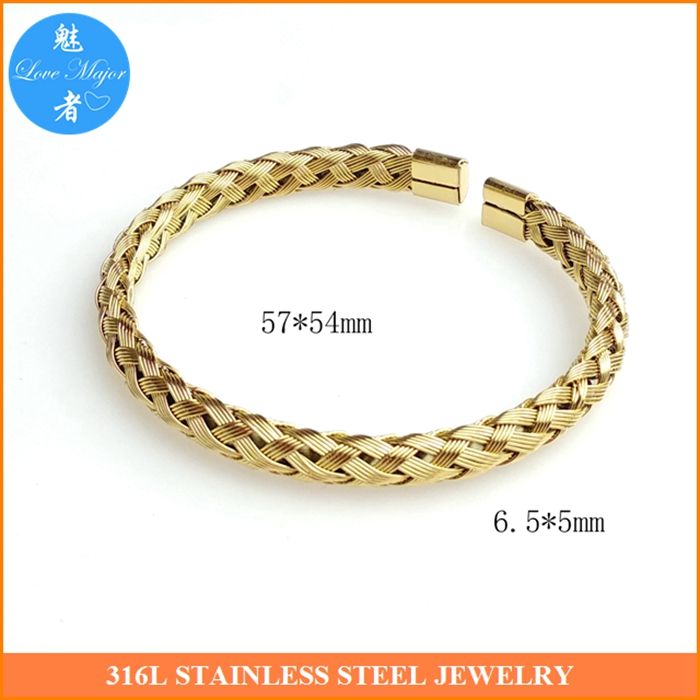 Bracelet manchette en acier inoxydable tressé rond doré pour homme et femme
