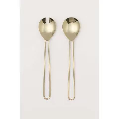 Serveurs à salade décoratifs en métal avec poignée en boucle dorée en acier inoxydable, design luxueux, pour servir dans les restaurants