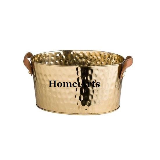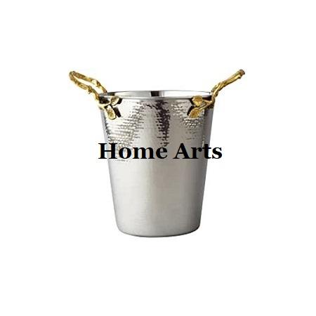 Seau à glace en acier inoxydable martelé, taille et forme personnalisées, avec poignées en cuir, pour usage domestique et hôtelier