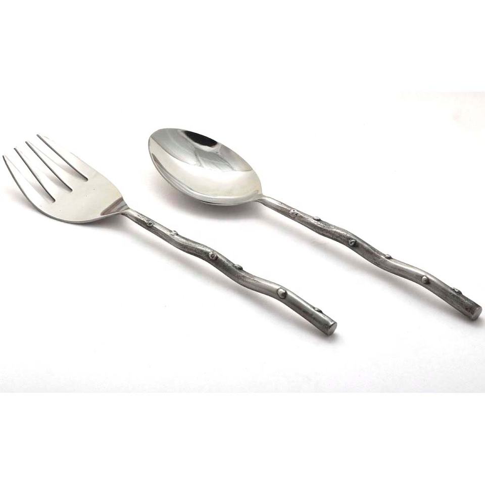 Ensemble de service à salade en acier inoxydable martelé à la main, manche forgé, outils de service de cuisine en acier inoxydable