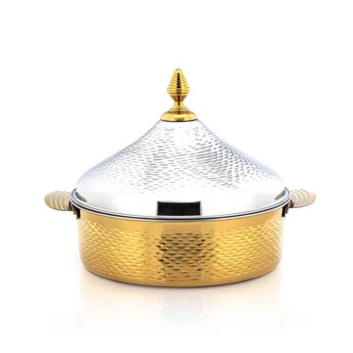 Réchauffeur d'aliments design courbé à la main en acier inoxydable servant des casseroles isolées marmite pour finition brillante marmite décorative