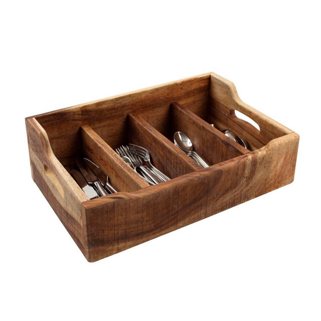 Ensemble de couverts à manche en acier inoxydable 24 pièces avec boîte de rangement en bois ensemble de vaisselle durable ensemble de cuillères à thé et fourchettes