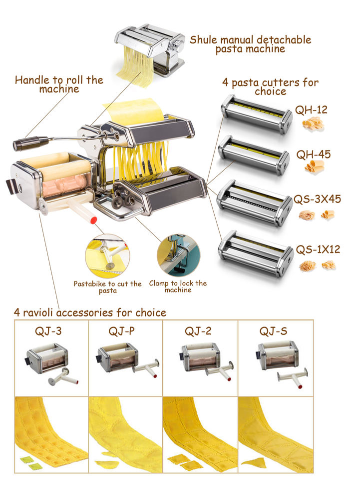 Machine à Pâtes Manuelle en Acier Inoxydable « Best-Seller » (4 en 1), pour Spaghettis, Fettuccine, Raviolis et Lasagnettes