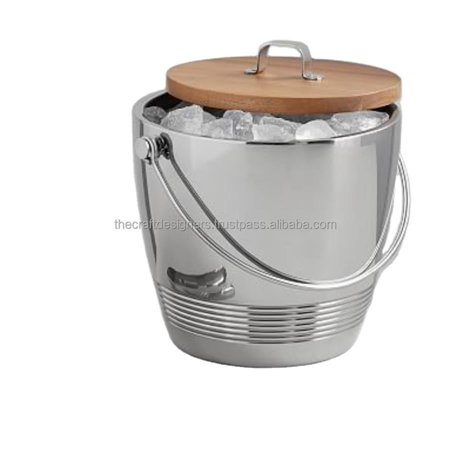 Seau à glace en acier inoxydable avec poignée pour comptoir de bar de qualité supérieure Logo personnalisé Seau à glace en métal pour bière et champagne avec couvercle
