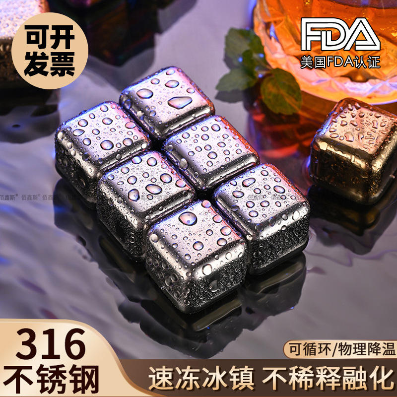 Cubes de glace carrés en acier inoxydable 316, pour whisky, bière, refroidissement rapide, utilisation en bar, KTV, ensemble