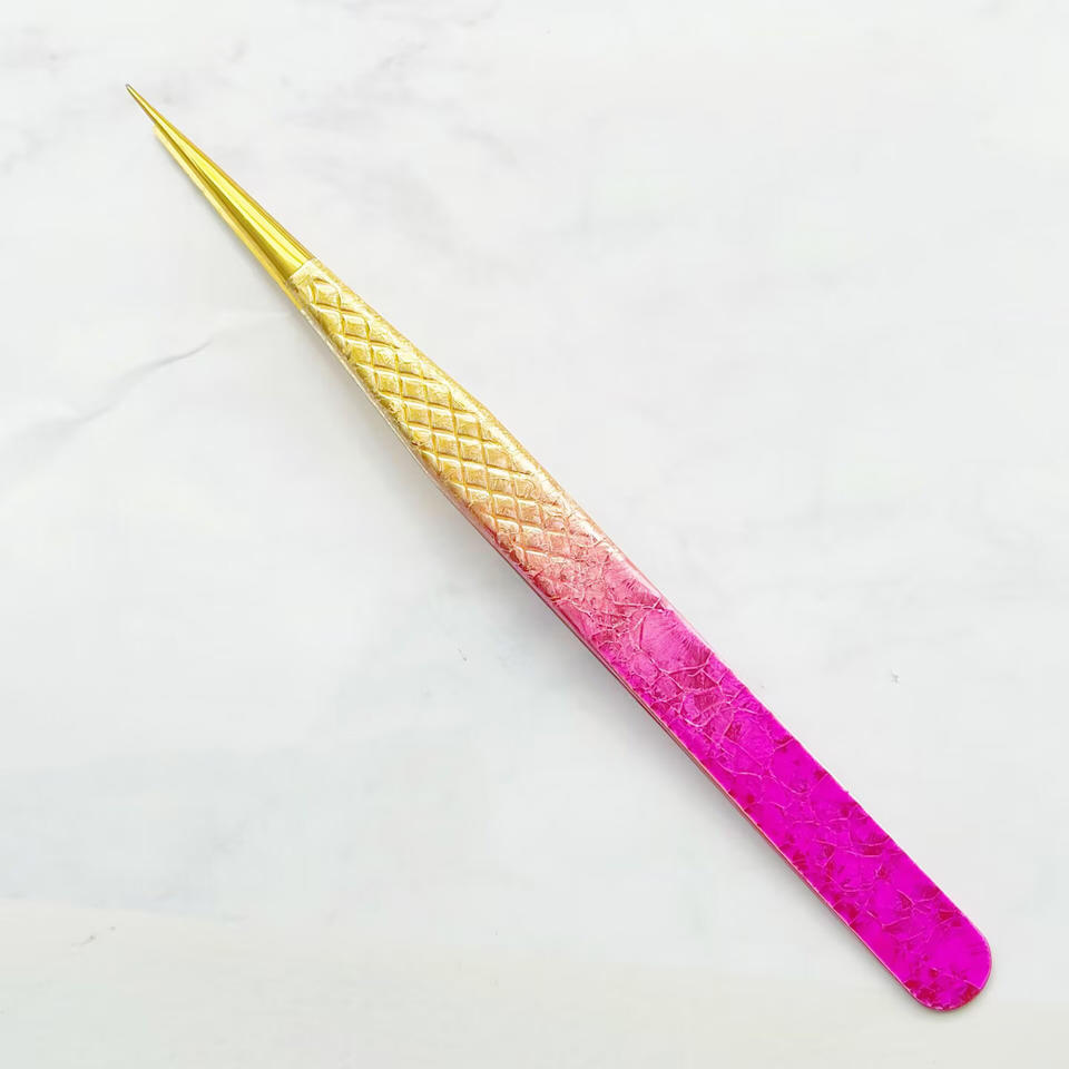 Pince à épiler en acier inoxydable, couleur fleur de glace, traitée thermiquement, durcie, précise, pour extensions de cils, pince à épiler en plume dorée