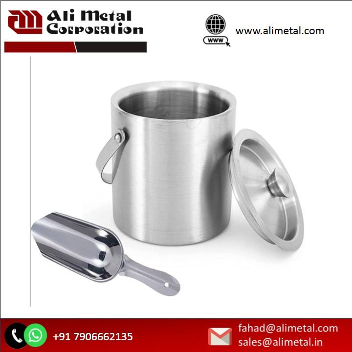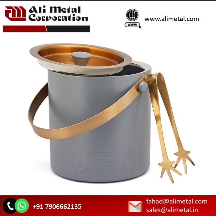 Seau glacé en acier inoxydable avec bâton et outil de barre essentiel avec support en bois pour bar à domicile et entièrement personnalisé.