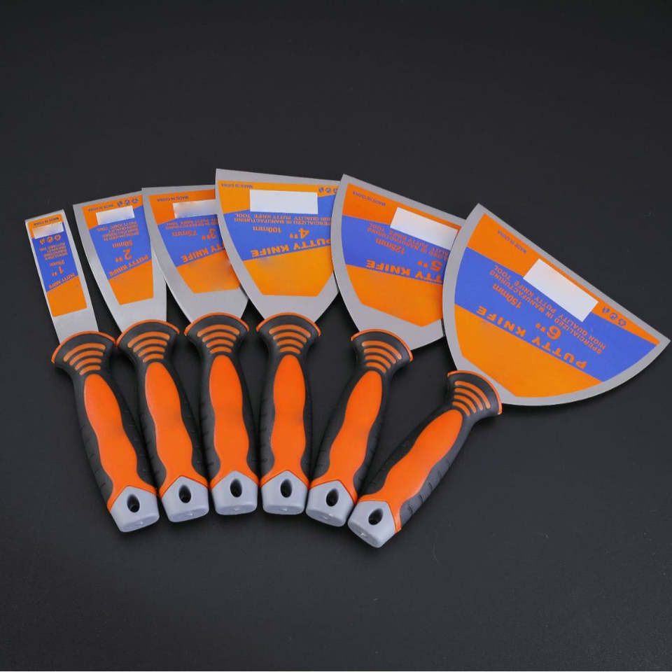 Couteau à mastic en acier inoxydable avec poignée TPR, racloir, truelle à plâtre, outil de lissage de la boue, remplisseur mural à haute élasticité
