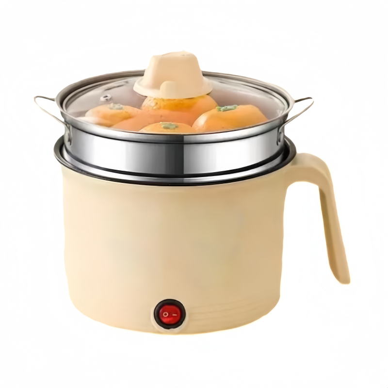 Marmite électrique en acier inoxydable avec couvercle en verre trempé, capacité de 1,8 L, utilisation domestique et extérieure, forme intégrée pour la cuisson à la vapeur