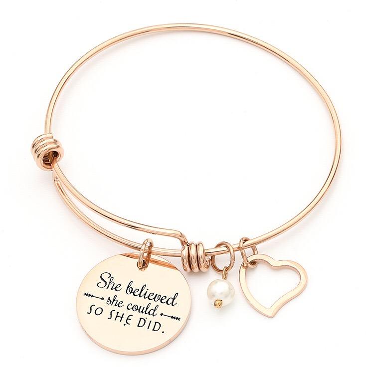 Bracelet jonc ajustable en acier inoxydable avec message inspirant, bracelet en fil de perles, bijoux en forme de cœur pour filles