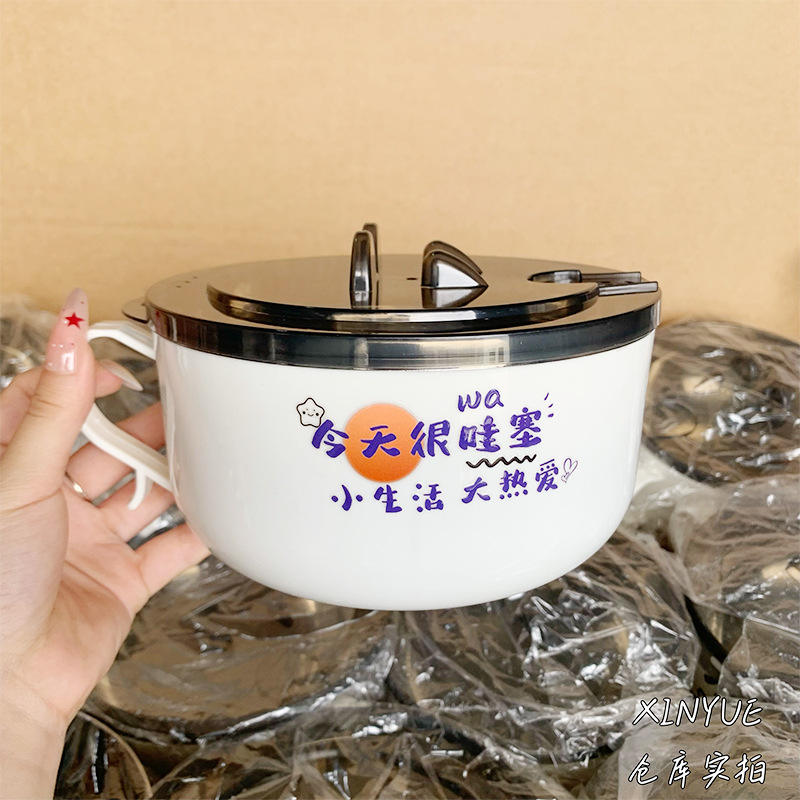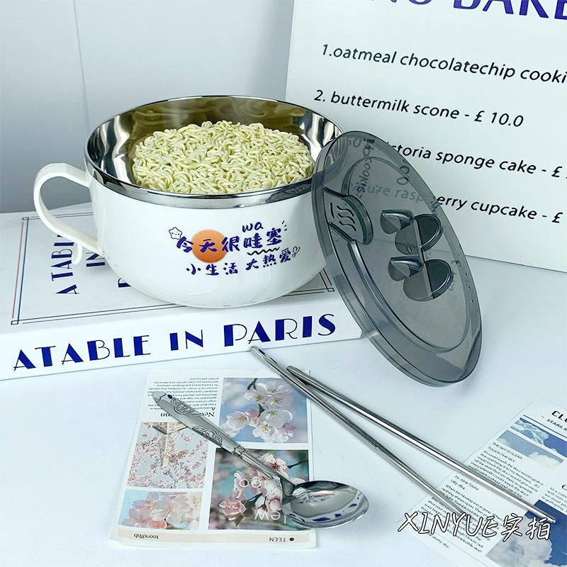 Bol à nouilles instantanées en acier inoxydable avec couvercle, design drainable, pour étudiants et usage domestique, passe au lave-vaisselle