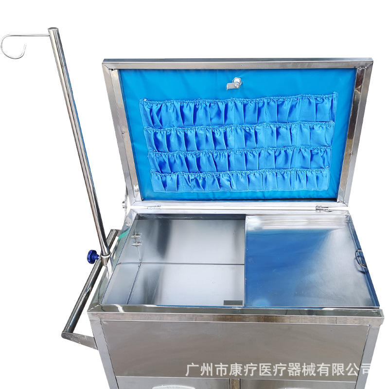 Chariot médical en acier inoxydable avec plateau rabattable et roues pour usage hospitalier