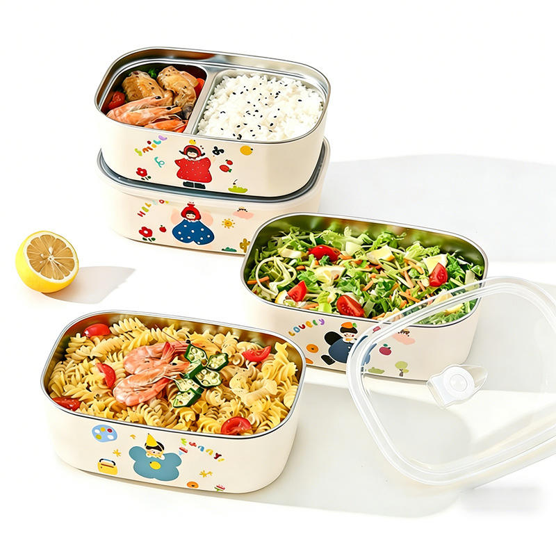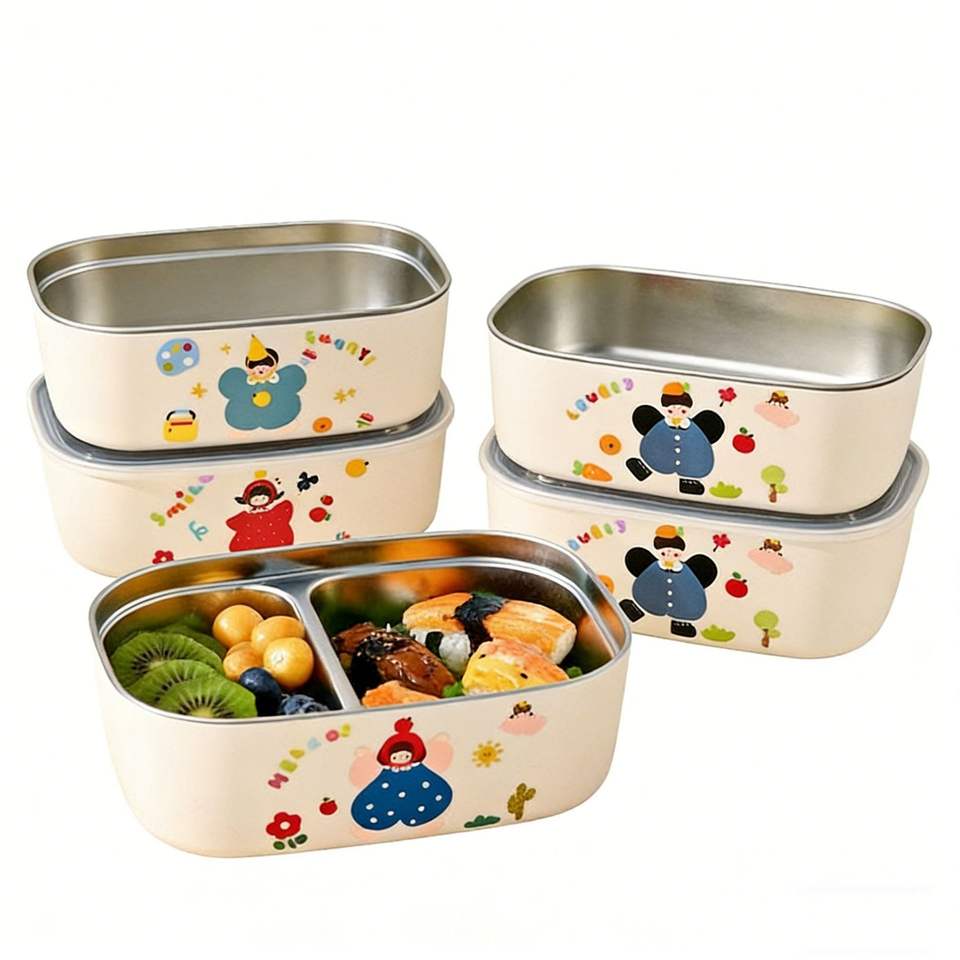 Boîte à lunch isotherme en acier inoxydable, motif rectangulaire de dessin animé avec compartiments pour les employés de bureau et les étudiants