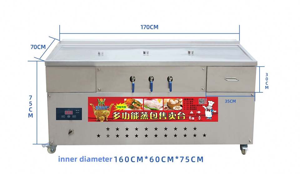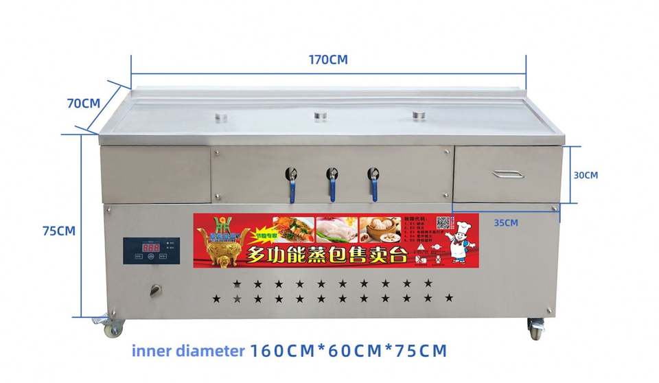 Machine à Vente Automatique Commerciale en Acier Inoxydable avec Isolation, Séparation Huile-Eau, Cuiseur Vapeur pour Pains Vapeur, Four de Cuisson Électrique