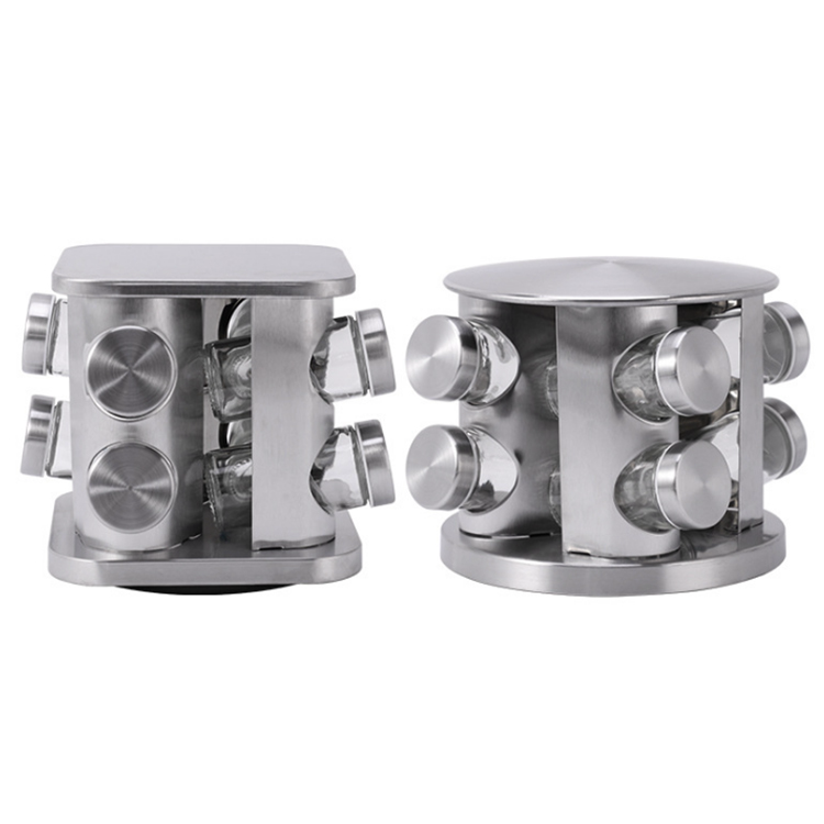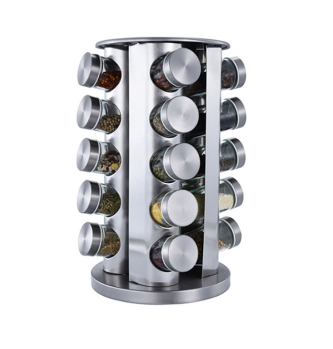 Organisateur de Carrousel à Épices Rotatif en Acier Inoxydable, Distributeur de Sels et Poivres avec Bocaux à Sucre