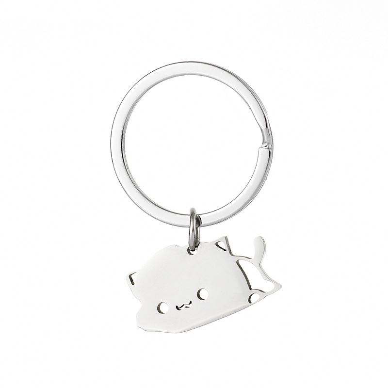 Boucle porte-clés en acier inoxydable Style chaton de dessin animé mignon porte-clés en métal pour copines Couples sac ornement cadeau