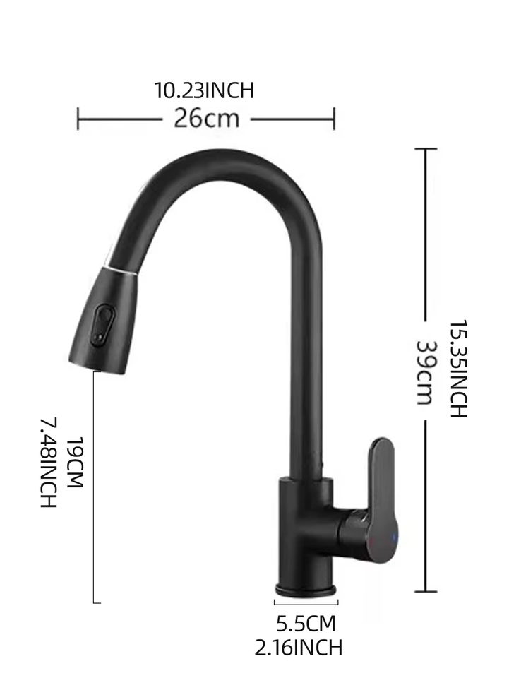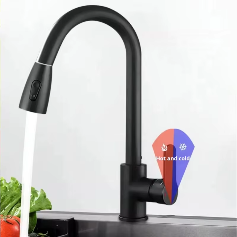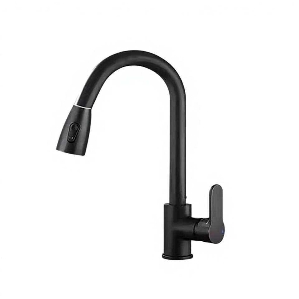 Robinet de cuisine en acier inoxydable avec douchette extractible, mitigeur monocommande noir mat à arc haute, pivotant à 360°