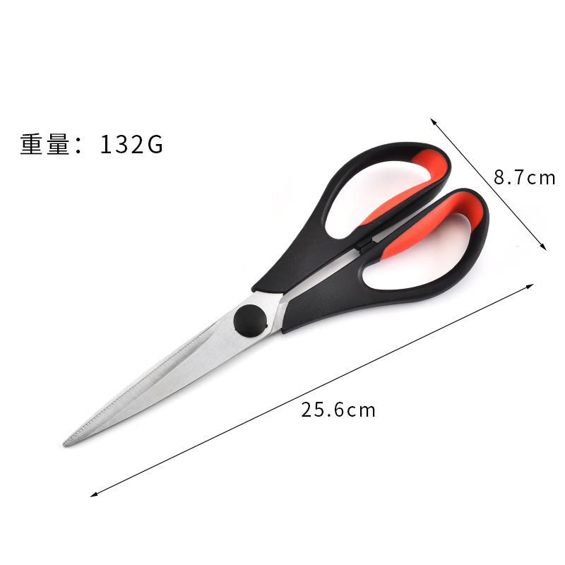 Ciseaux de cuisine en acier inoxydable noir et rouge à tête droite pour usage domestique, matériau PPTPR, origine Yangjiang JD C06