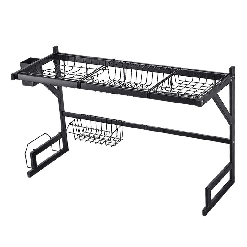 Égouttoir à vaisselle en acier inoxydable pour évier de cuisine, 2 niveaux, suspendu, anti-humidité, portable, sans perçage, carré, taille L