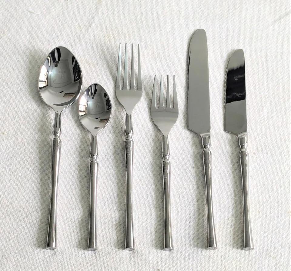 Ustensiles de cuisine en acier inoxydable Ensemble de couverts entièrement en métal Design argent Outils de couverts Finition brillante Design Ensemble de couverts