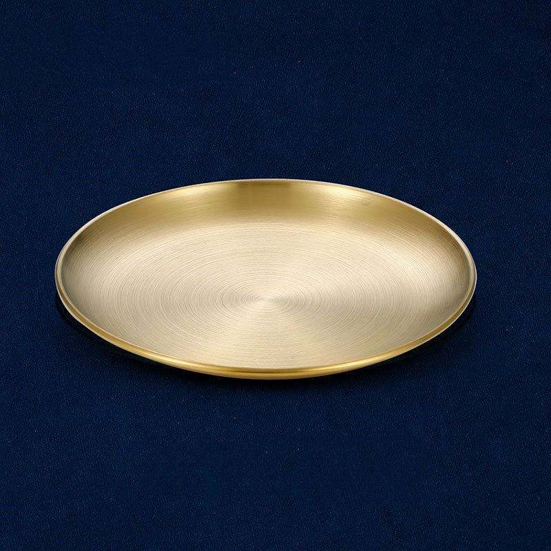 Stainless Steel Korean Plate Household Golden Decoration Tray Round Fruit Barbecue Buffet Bone Plate Wholesale R2261