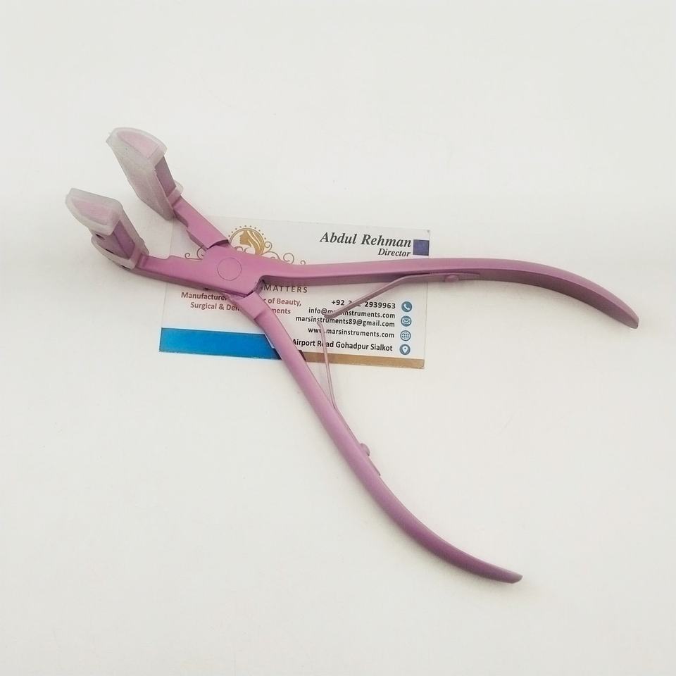 Pince à extensions de cheveux en acier inoxydable en forme de L avec poignée en silicone couleur lilas usage commercial