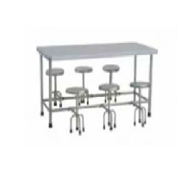 Table de travail de laboratoire en acier inoxydable avec tabourets ronds pour laboratoires scientifiques