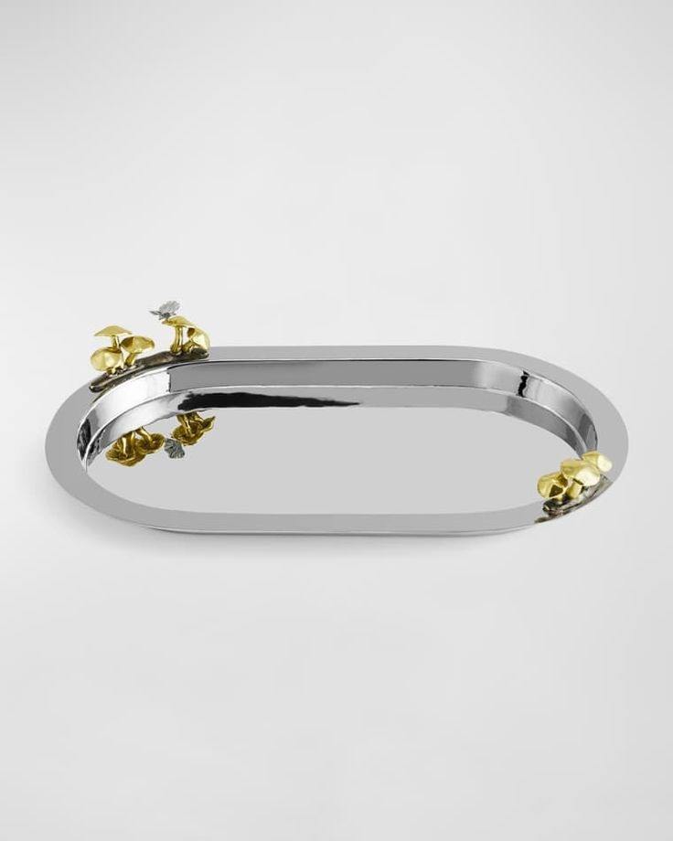 Stainless Steel Lade Free Brass Flower & Leaf Branches Attach Beautiful Design Shape Gold Branches Handle Tray