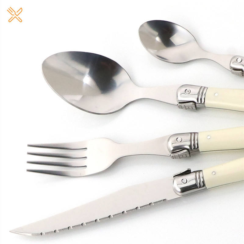 Couverts Laguiole en acier inoxydable, couteau à steak, fourchette, cuillère, cuillère à café, couleur ivoire, bas quantité minimale de commande Direct Factory East Top