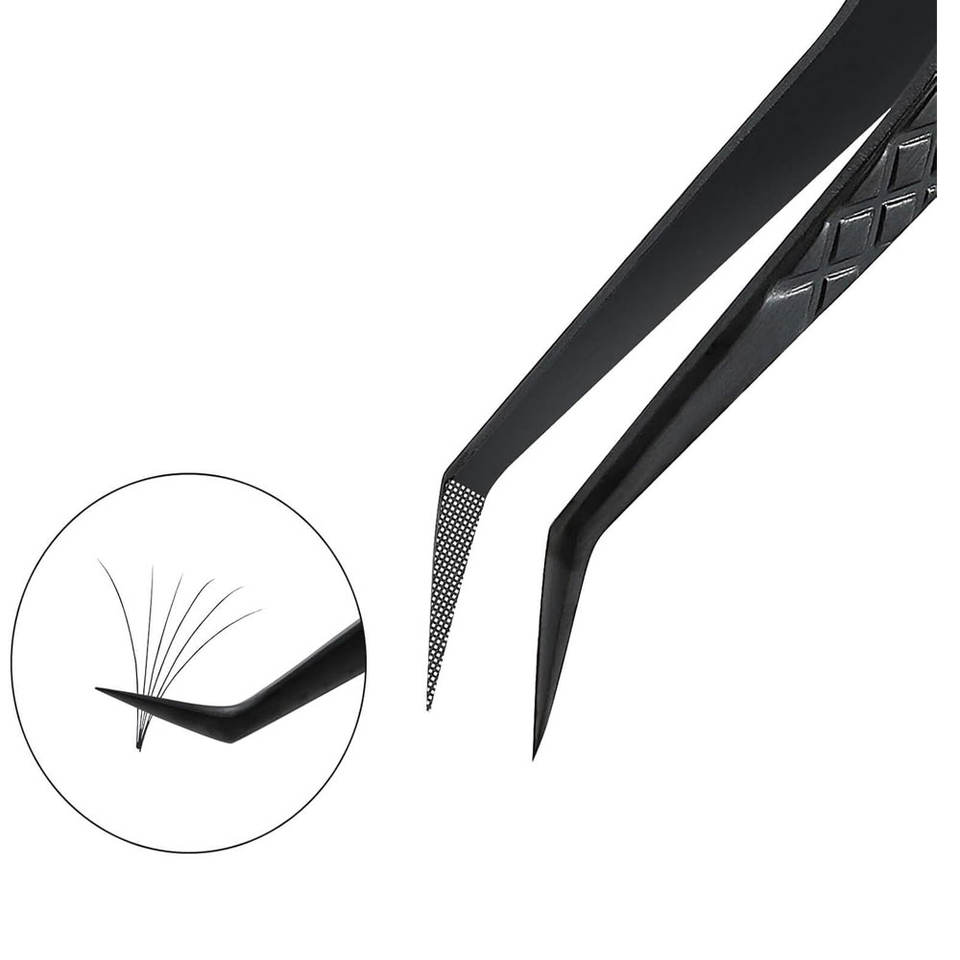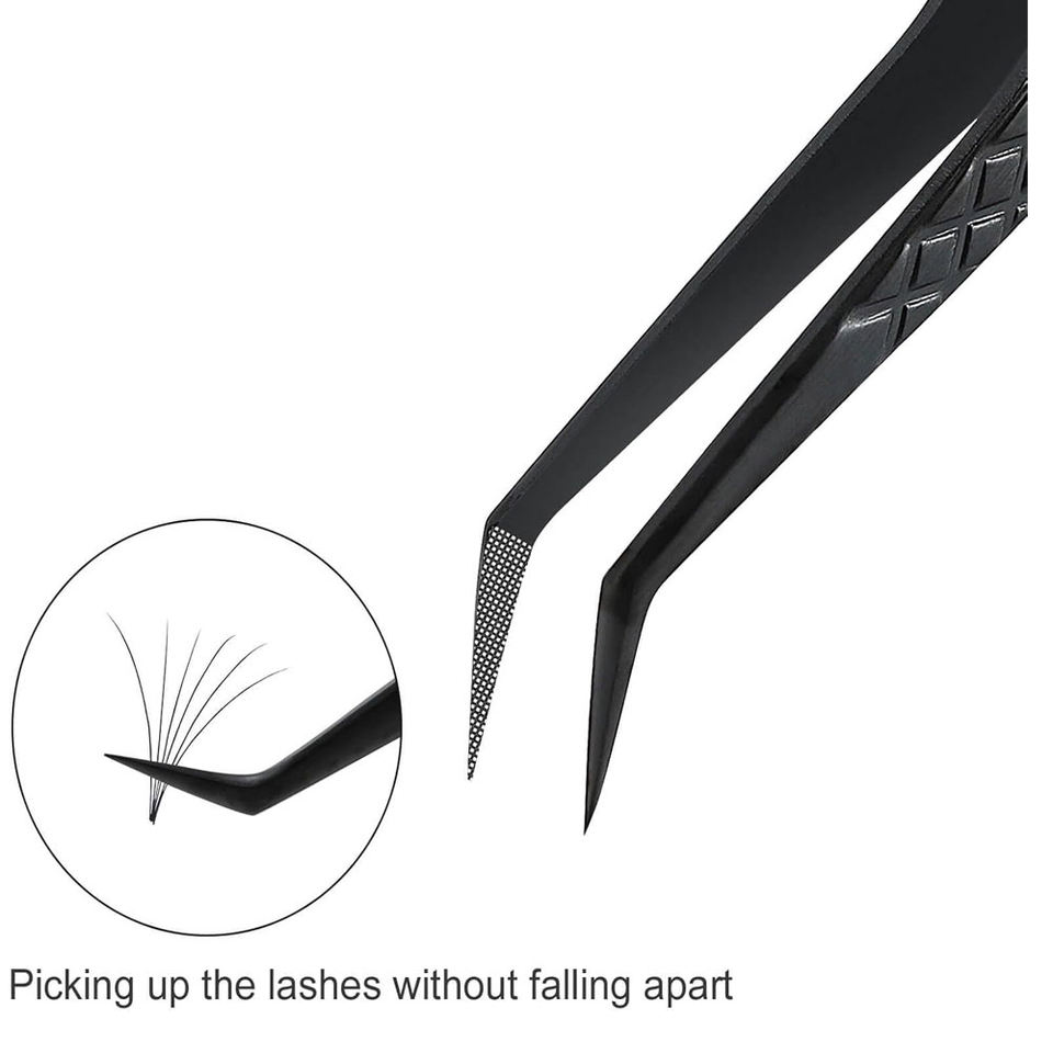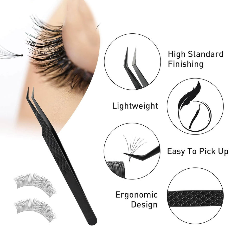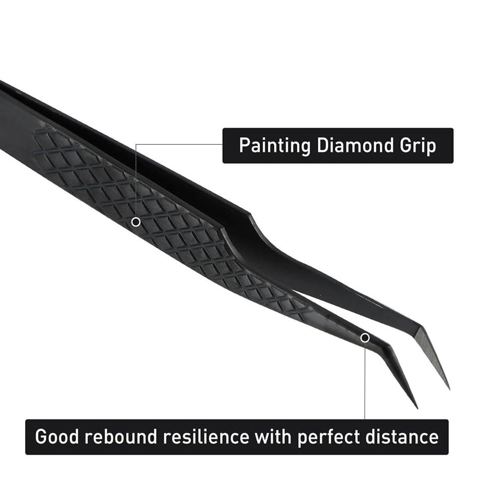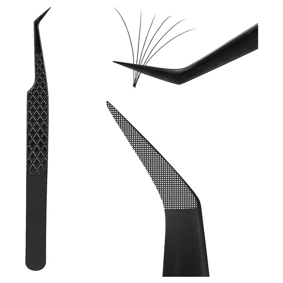 Pinces à cils professionnelles en acier inoxydable avec pointe inclinée, antistatiques, durables, emballage et logo personnalisables