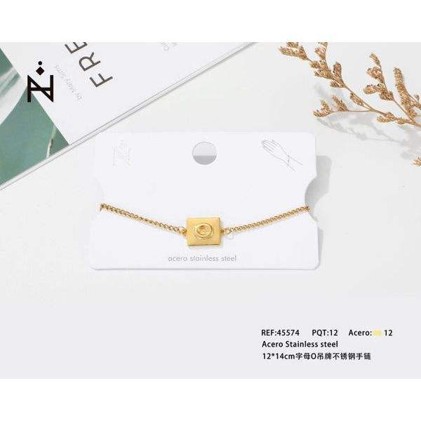 Bracelet à breloque lettre O en acier inoxydable 12x14cm plaqué or, bijoux de mode unisexe